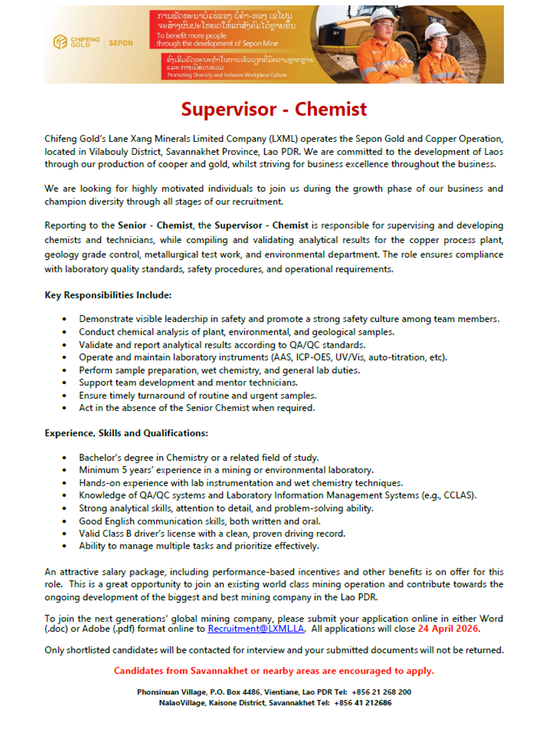 Supervisor – Chemist