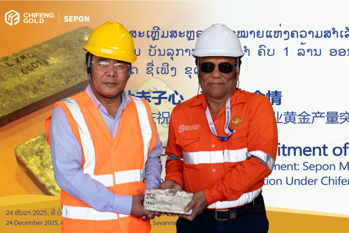 The milestone represents an important achievement for Chifeng Gold’s operations in Lao PDR and reflects the successful recovery, stabilisation, and growth of gold production at Sepon under Chifeng Gold’s ownership. The occasion was formally marked at the Sepon processing plant, where the gold bar representing the 1-million-ounce milestone was presented as a symbol of the Company’s achievement.