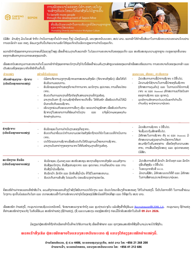 ຫົວໜ້າຄຸມງານ -ຊີເຈາະ, ຊ່າງຊີເຈາະ, ພະນັກງານຂັບລົດ